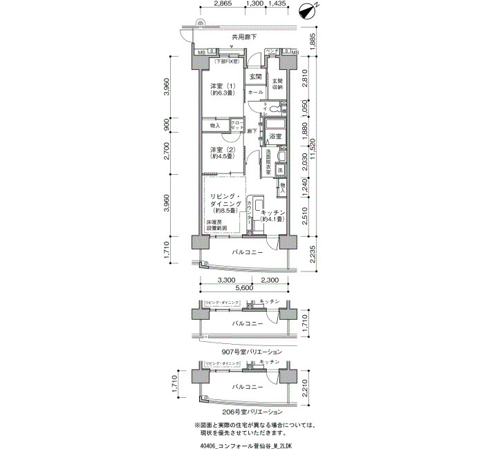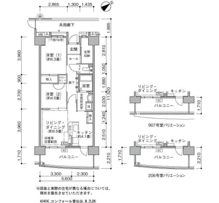 | 2LDK | 63~70 | ¥110,200~137,600 | 43 |