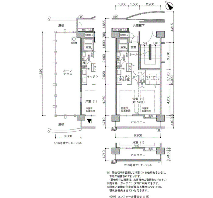 | 2DK | 54 | ¥98,300~104,300 | 6 |