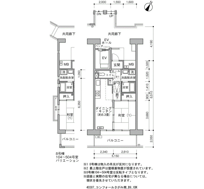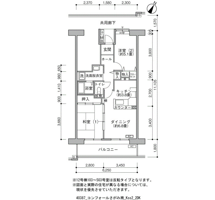 | 2DK | 50~56 | ¥91,400~108,300 | 67 |