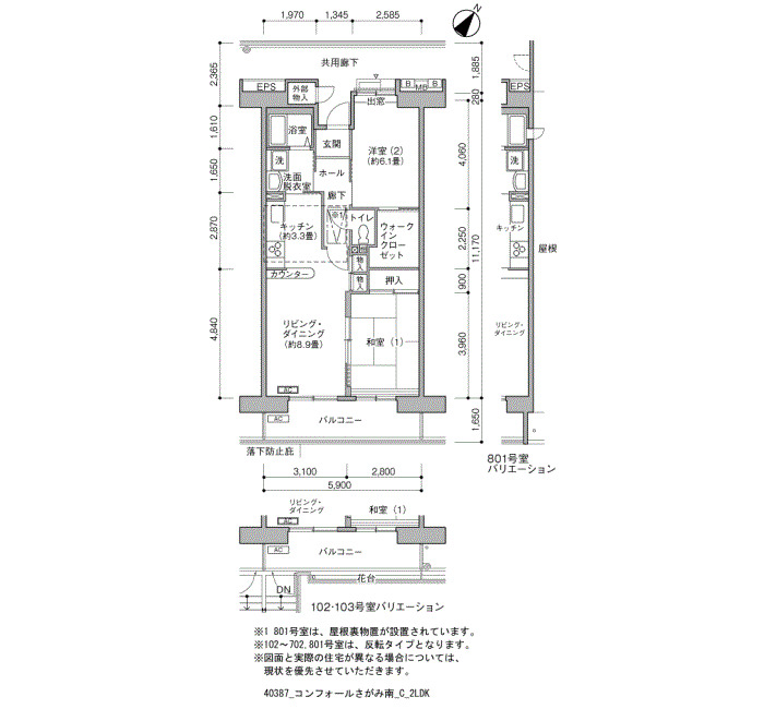 | 2LDK+S | 61 | ¥96,700~117,500 | 31 |