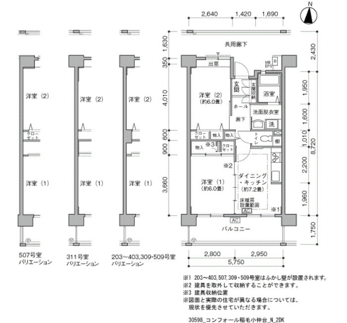 | 2LDK | 64〜78 | ¥118,000〜144,800 | 31 |