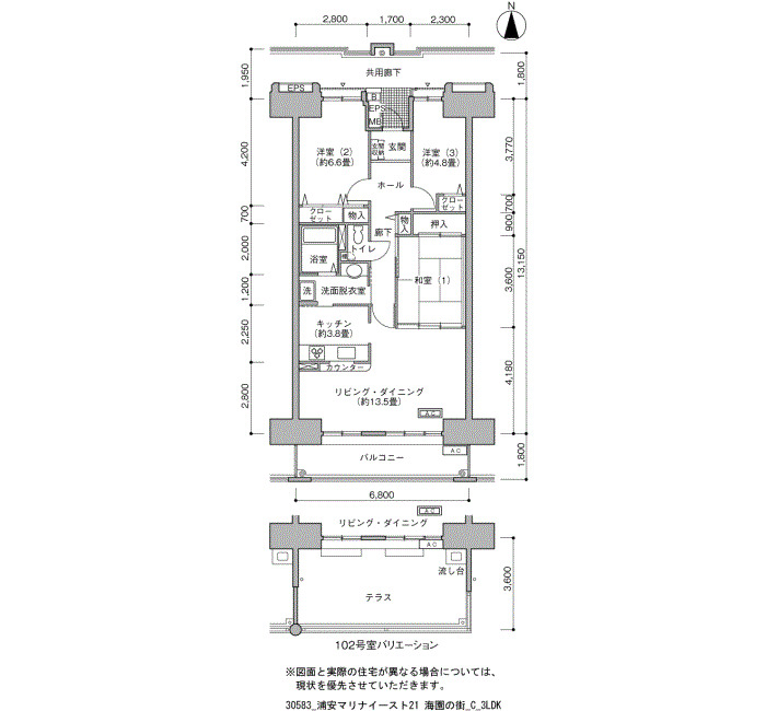 | 4LDK/4LDK(メゾネット)/4LDK+S/ 4LDK+S(メゾネット) | 98~135 | 95 |