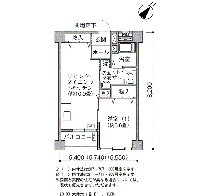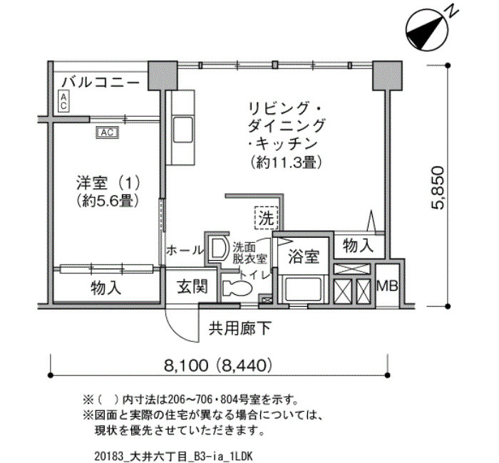 | 1LDK | 44~49 | 59 |