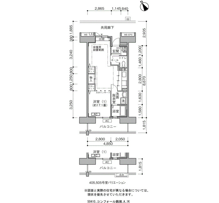 | 1K | 43〜46 | ¥82,000〜102,500 | 22 |