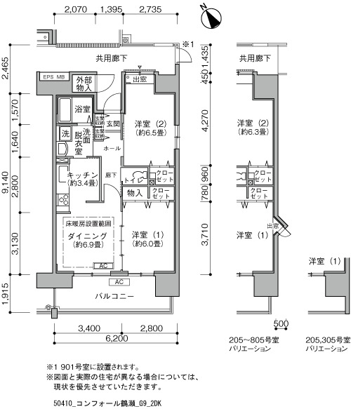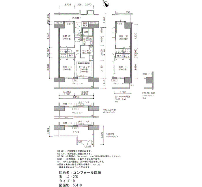 | 2LDK/2LDK+S/2LDK+2S | 64〜86 | ¥105,300〜136,800 | 10 |