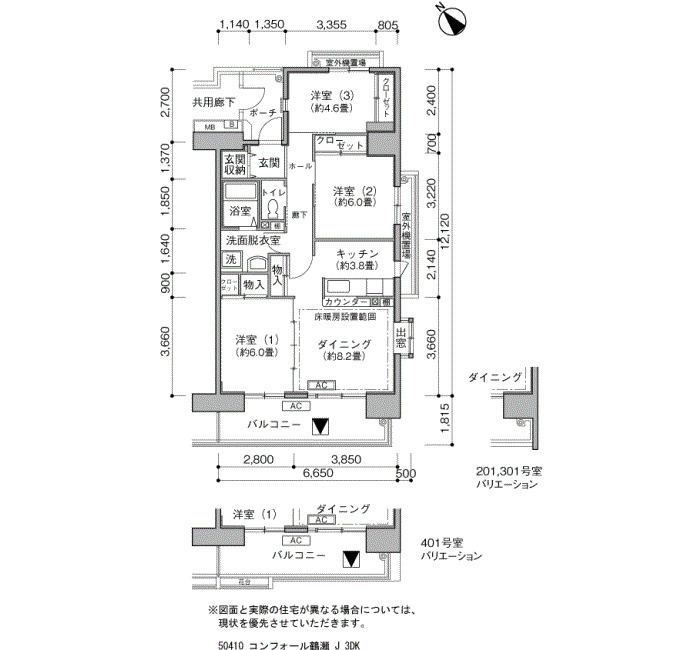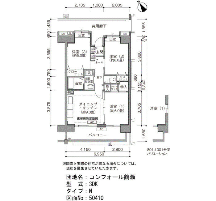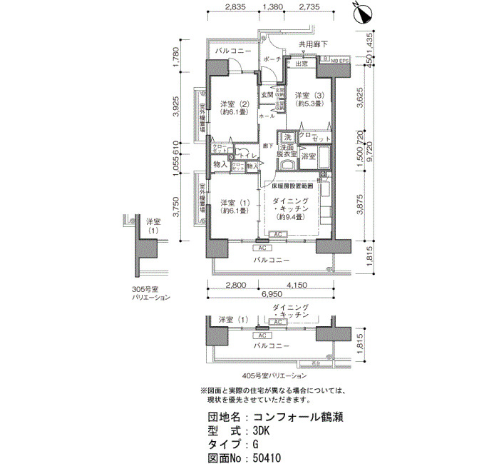 | 3DK | 65〜73 | ¥112,800〜138,600 | 53 |