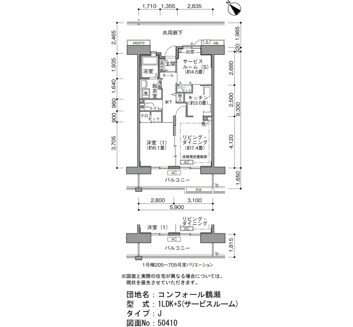 | 1LDK/1LDK+S | 50〜64 | ¥90,100〜118,300 | 205 |