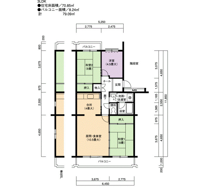 | 3LDK | 70~71 | ¥84,900~91,400 | 40 |