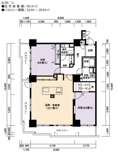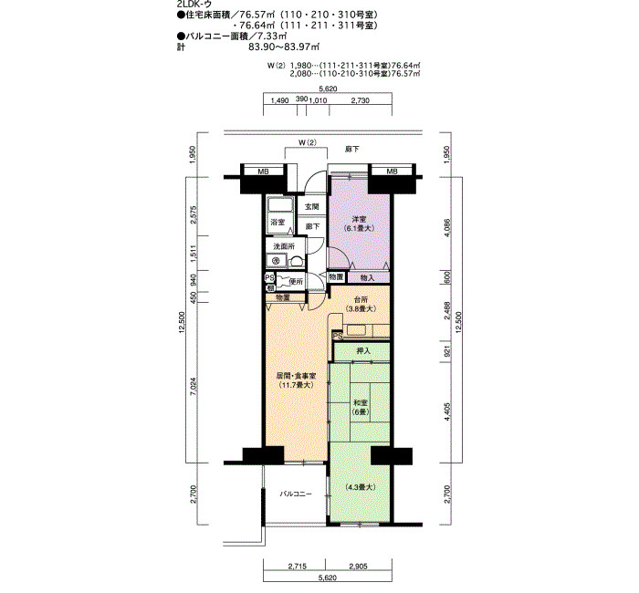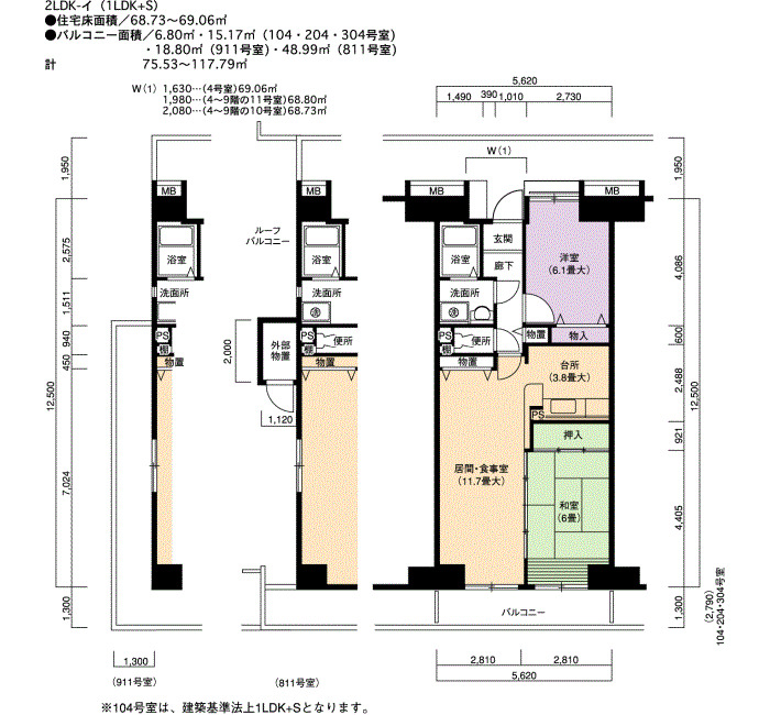 | 2LDK | 68~90 | 46 |