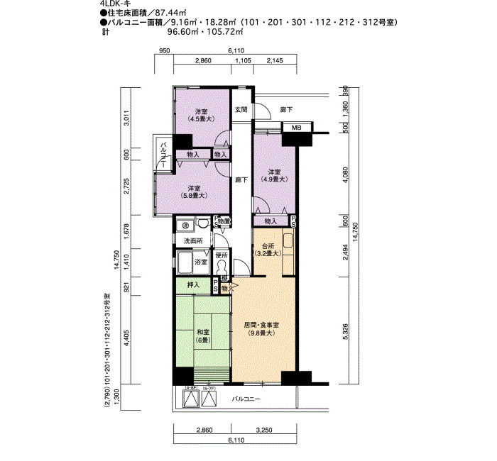 | 4LDK | 87~91 | 56 |