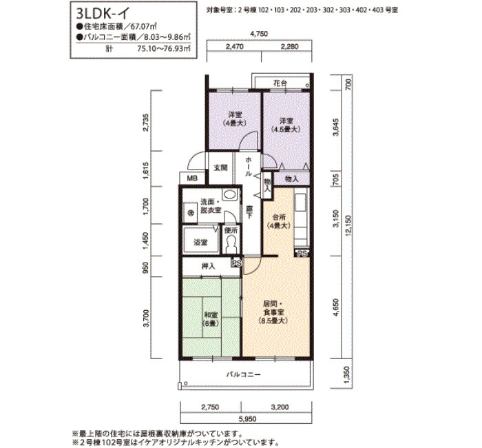 Reserved | 4F | 3LDK | 75㎡ | Details |