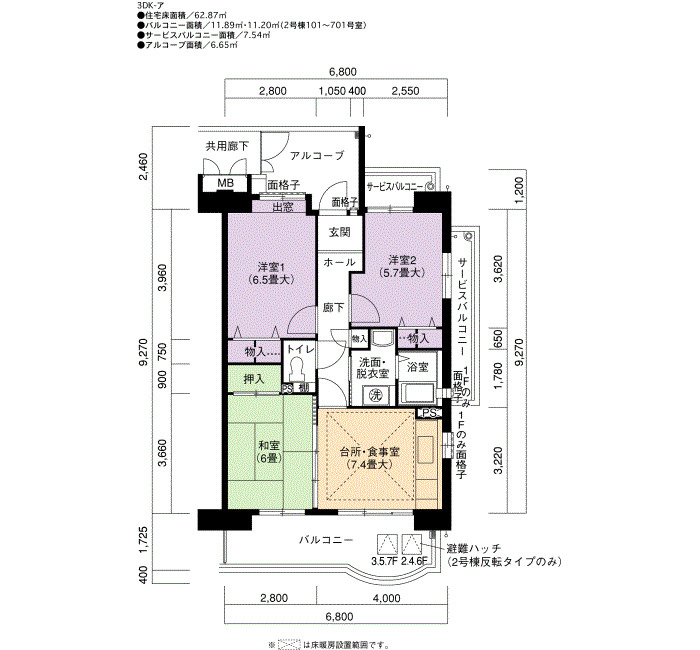 Reserved | 6F | 2DK | 57㎡ | Details |
