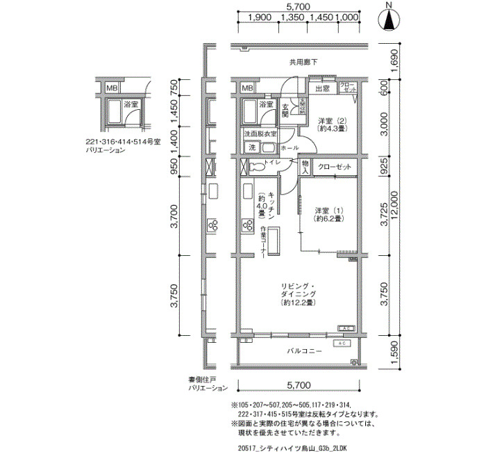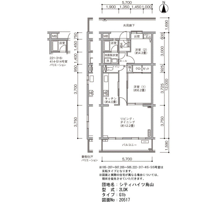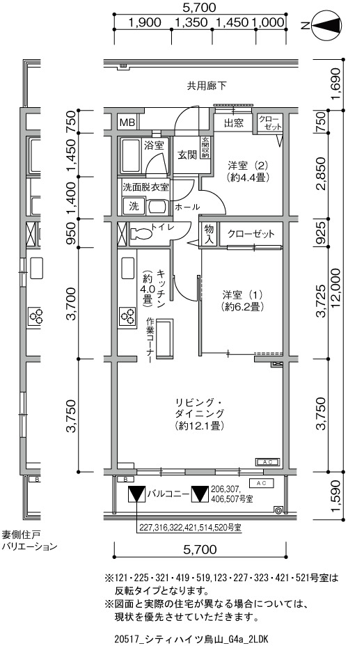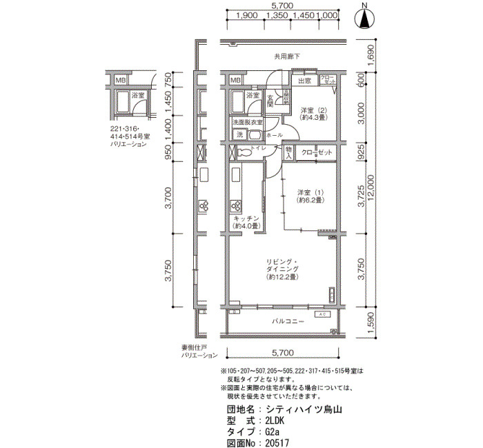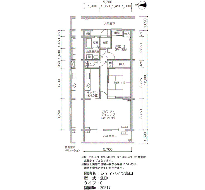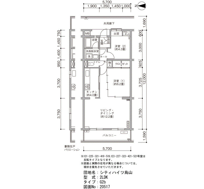 | 2LDK | 57~66 | 62 |