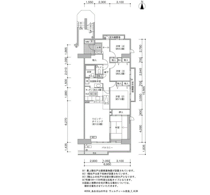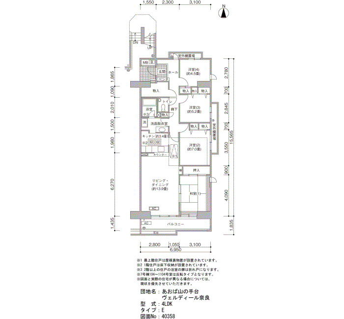 | 4LDK | 96~104 | 60 |