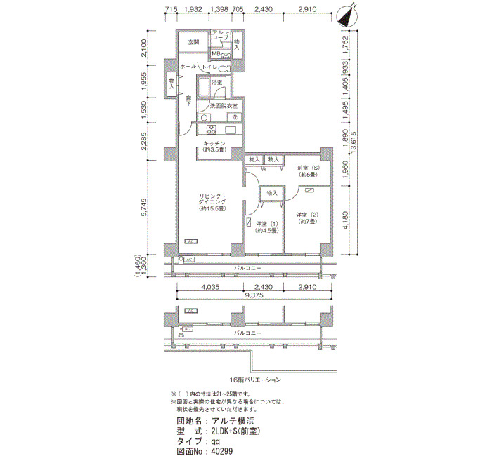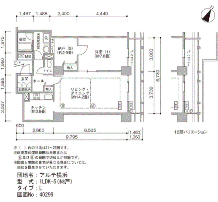 | 1LDK+S | 64~65 | 22 |
