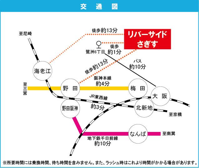 Osaka Municipal Sennichimae Line 『 Noda Hanshin Station 』 + 13 minutes walk Hanshin Main Line 『 Noda Station 』 + 14 minutes walk |