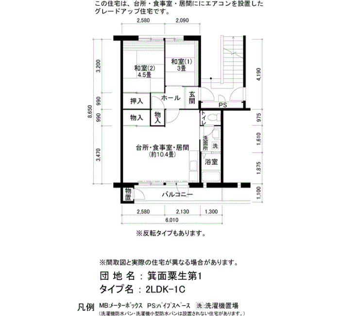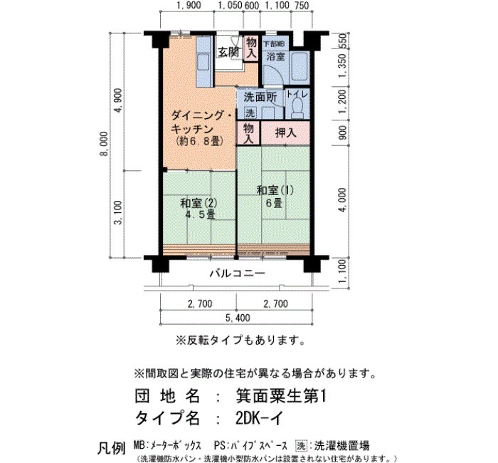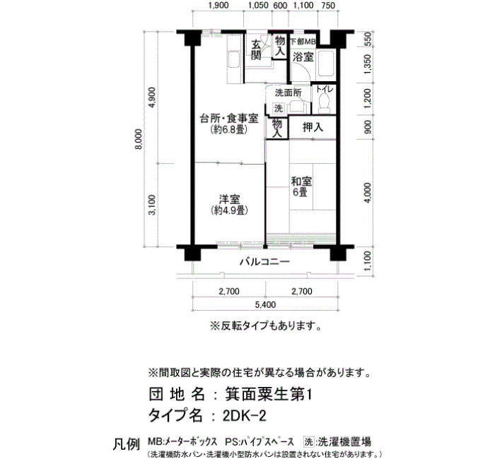| 2LDK | 46〜48 | ¥58,100~62,900 | |